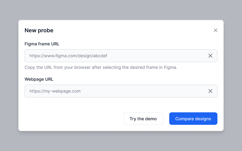 A probe defines a persistent visual comparison between a Figma design and a live webpage.